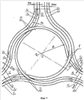 Аналогом настоящего изобретения является “Улучшенная развязка с круговым движением с пятью эстакадами”, представленная на стр.229 книги Miestotvarka. В этом аналоге представлены две пересекающиеся дороги. Одна дорога предназначена для движения прямо по эстакаде, а вторая – для движения под эстакадой. Дорога с круговым движением транспорта построена для поворота направо и налево. Эта дорога предназначена для поворота налево. В местах пересечения транспортных потоков полоса движения дороги проходит по эстакаде или под эстакадой, и тем самым предотвращается одноуровневое пересечение полос. Полоса для поворота направо у каждой дороги отходит вправо задолго до эстакады с круговым движением. Полоса одной из пересекающихся дорог, предназначенная для движения прямо и налево, проходит по эстакаде с круговым движением, а такая же полоса другой дороги проходит под эстакадой с круговым движением транспорта. Сразу за эстакадой с круговым движением транспорта полоса каждой из дорог, предназначенная для поворота налево, соединена крутыми поворотами направо и налево с полосой дороги с круговым движением транспорта.