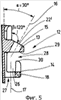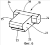 Согласно фиг.6 передвижной фиксатор 19 имеет тело 22, на торцевой стороне которого имеется носик 23. Противоположно носику 23 на теле фиксатора находятся два боковых выступа 24, выступающие из боковин 25 тела 22 фиксатора.