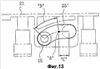 Как показано на фиг. 13, она может быть выполнена так, что изогнутая вверх секция В, имеющая частично форму дуги, образована от верхнего конца до верхней мертвой точки А направляющей щели 25′ подъема, а горизонтальная секция С образована от верхней мертвой точки А до верхнего конца направляющей щели 25′ подъема.
