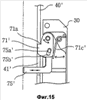 В то же время наряду с указанной выше конструкцией, блок 70 управления запиранием может иметь следующую конструкцию. Как показано на фиг. 15, блок 70′ управления запиранием включает стопорный механизм 71′, который дистанционно стопорится в закрывающей щели 41 для стопорного механизма подъемного рабочего стержня 40, пружину 71с’ стопорного механизма, которая сохраняет стопорное состояние стопорного механизма 71′, и переключатель 75′ управления запиранием, который снимает стопорное состояние стопорного механизма 71′.