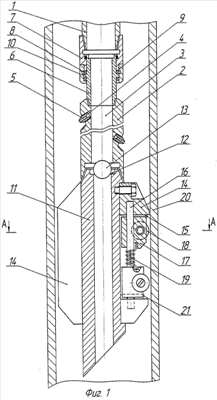 Таким образом, перфоратор совершает только возвратно-поступательные перемещения вдоль обсадной колонны, а поперечные (крутильные) колебания не передаются подшипником 8 и не допускаются механизмом самоторможения.