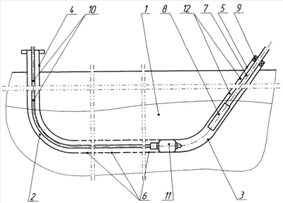 Далее через второе устье 5 спускают колонну НКТ 7 с насосом 8 на конце. Насос 8 может быть любой известной конструкции, например электроцентробежным (ЭЦН), предназначенным для перекачки высоковязкой нефти или битума.