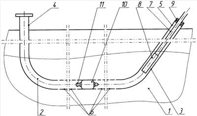 Далее через второе устье 5 спускают колонну НКТ 7 с насосом 8 на конце. Насос 8 может быть любой известной конструкции, например электроцентробежным (ЭЦН), предназначенным для перекачки высоковязкой нефти или битума.