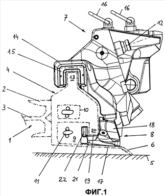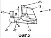 Штриховые линии на фиг.3 изображают торцевые стенки 27 и 28 паза 29 (см. фиг.4), который открыт как вверх, так вниз и образован торцевыми стенками 27, 28 и продольными стенками 30, 31 направляющего башмака 18.
