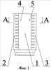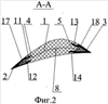 на фиг.4 схематично изображен вкладыш из композиционного материала для металлической накладки передней кромки пера лопатки;