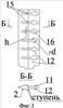 Металлические накладки 2 и 3 (см. фиг.2) имеют развитые заглубляемые ступенчатые окончания 11, 12 и 13, 14, уходящие во внутренние слои композиционного материала пера 1 с поперечными прорезями 15 (см. фиг.3). У каждой поперечной прорези 15 выполнены отверстия 16 с диаметром (d), большим ширины (h) поперечных прорезей 15. При наличии ступеней на окончаниях 11, 12 и 13, 14 металлических накладок 2 и 3 увеличивается площадь их соединения с композиционным материалом пера 1, что значительно повышает прочность соединения на сдвиг и отрыв.