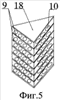 на фиг.5 схематично изображен вкладыш из композиционного материала для металлической накладки задней кромки пера лопатки.
