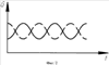 Устройство для глушения шума выхлопа ДВС работает следующим образом. Волна сжатия через впускной патрубок 1 попадает в первую полость глушителя 2 и затем в последнюю полость. В последней полости глушителя волна сжатия разделяется на две волны, которые движутся по выпускному патрубку 3 и трубопроводу 4 примерно с одинаковой скоростью. Так как трубопровод 4 имеет большую длину, чем выпускной патрубок 3, выпуск порции газа из трубопровода 4 происходит позже. Длины выпускного патрубка и трубопровода подбираются таким образом, чтобы обеспечить приход волн сжатия в противофазе (фиг.2), что позволяет снизить колебания расхода выхлопных газов и, соответственно, амплитуду звуковых колебаний.