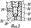 Скважинный штанговый насос содержит цилиндр 1 (фиг.1) со всасывающим клапаном 2, полый плунжер 3 с нагнетательным клапаном 4, вращатель потока жидкости 5. Нижний конец полого плунжера (в дальнейшем – плунжер) 3 выполнен с кольцевой выточкой 6 и с выступающей вниз трубкой 7. Внутри этой трубки неподвижно установлен шнек 8 вращателя потока жидкости 5. На верхней части трубки 7 просверлены радиальные отверстия 9, а в нижней части плунжера 3 с кольцевой выточкой 6 просверлено радиальное отверстие 10, в которое запрессован один конец Г-образного патрубка 11, имеющего канал 12. Второй конец 13 этого патрубка 11 направлен вниз и находится над шнеком 8. Выше нагнетательного клапана 4 на внутренней цилиндрической поверхности плунжера 3 выполнен кольцевой выступ 14 (фиг.2) с торцевой 15 и конической 16 поверхностями. Внутренняя цилиндрическая поверхность 17 плунжера выполнена гладкой и на ее верхней части нарезана резьба 18, куда завернут резьбовой частью переходник 19. Наружняя поверхность переходника 19 выполнена с двумя гладкими цилиндрическими поверхностями 20 и 21. В кольцевую полость, образованную внутренней цилиндрической 17, торцевой 15 и конической 16 поверхностями плунжера 3 и наружными цилиндрическими 20 и 21 и торцевой (позиция не дана) поверхностями переходника, установлен двухступенчатый полый поршень 22. Он выполнен с кольцевой выступающей внутрь частью 23 и на всех его цилиндрических поверхностях выполнены кольцевые канавки (на фиг. не показаны), в которые установлены компрессионные кольца. В средней надпоршневой полости А установлена пружина сжатия 24. Нижняя подпоршневая полость Б посредством радиального канала 25 (фиг.1), выполненного в нижней части переходника 19, сообщается с полостью В насоса. Верхняя надпоршневая полость Г сообщается радиальным каналом 26 плунжера 3 с полостью кольцевой выточки 27, выполненной на наружной поверхности плунжера 3. Через стенки переходника 19 и плунжера 3 выполнен продольный канал 28, нижняя часть которого сообщается с каналом 12 патрубка 11. Верхняя полость продольного канала 28 сообщается с помощью радиального канала 29 с верхней надпоршневой полостью Г, а с помощью радиального канала 30 – со средней надпоршневой полостью А. Верхняя часть 31 (фиг.3) продольного канала 28 просверлена с незначительно большим диаметром. При этом на образовавшуюся коническую поверхность 32 установлен шарик 33, диаметр которой незначительно больше диаметра продольного канала 28 и меньше диаметра верхней части 31 канала 28. На верхней части 31 канала 28 нарезана резьба 34, куда завернута резьбовая пробка 35.