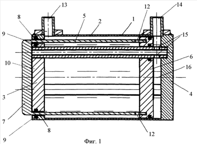 Расположение отверстий 13, 14 на боковой поверхности корпуса 1 целесообразно при использовании устройства в вертикальном положении на второй крышке 4.
