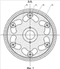 Поворотные рычаги 17 выполнены с элементами крепления 31 для подсоединения одного конца пружин растяжения 32, другой конец которых крепится к элементам крепления 33 на водиле 20; таким образом, пружины 32 стягивают к центру концы поворотных рычагов 17, несущих диски 7, а также прижимают ролики 23 (толкатели) к направляющим вырезам 24.
