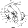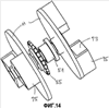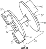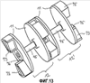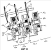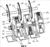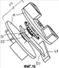 – фиг.4: в перспективе, два суппорта (отдельный элемент передачи импульсов), установленных с возможностью вращения на одной общей оси и на расстоянии друг от друга;
