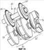 Пятый пример выполнения (фиг.25) показывает устройство с маховиком. За счет комбинации с маховиком достигается еще более совершенная передача импульса. Также достигается повышение центробежной силы. Далее, использование маховиков имеет то преимущество, что желаемый собственный вес внутренних дисков может быть снижен (экономия веса), если маховики разместить снаружи на шестернях или ограничителях обратного хода.