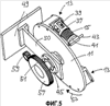 На фиг.14 схематично изображен элемент 12 передачи импульсов с установленным на оси 45 ограничителем 51 обратного хода и шестерней 55.