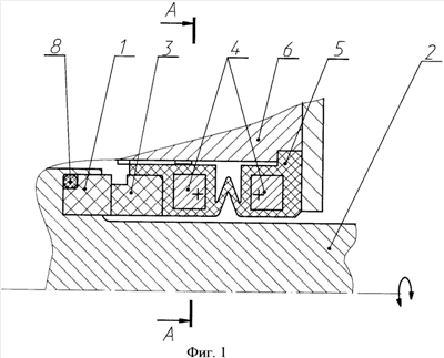 Таким образом, данное торцовое уплотнение обеспечивает неизменность прижимающего усилия в течение всего срока эксплуатации торцового уплотнения, компактно и надежно.