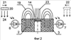 Такое взаимное расположение в пространстве инфракрасных фотоприемников 6, 7, емкостного чувствительного элемента 14, индуктивного чувствительного элемента 1 и контролируемого изделия 20 (см. фиг.2) при прохождении им в направлении стрелки 21 (22) относительно чувствительного элемента устройства параллельно его чувствительной поверхности в пределах действия электромагнитного поля 19 у открытого торца чашки ферритового сердечника 3, электрического поля 23 емкостного чувствительного элемента 14 и в пределах расстояний чувствительности фотоприемников 6, 7 всегда обеспечивает последовательное взаимодействие контролируемого изделия 20 с оптическим окном фотоприемника 6 (7), электромагнитным полем 19, электрическим полем 23 и оптическим окном фотоприемника 7 (6). Это, в свою очередь, обеспечивает: