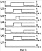 Далее контролируемое изделие 20, находясь в зоне действия электромагнитного поля 19 и оставляя фотоприемник 6 (7) в засвеченном состоянии, входит в зону действия электрического поля 23 емкостного чувствительного элемента 14 и образует с ним электрический конденсатор. Значение электрической емкости образованного таким образом конденсатора увеличивается до такого уровня, при котором происходит возбуждение мультивибратора 15 и переход его в режим генерации электрических колебаний. Амплитуда выходных импульсов мультивибратора 15 преобразуется детектором 16 в постоянное напряжение с уровнем логической “1”, которое превышает входное пороговое значение напряжения триггера порогового элемента 17. При этом последний переключается в другое устойчивое состояние, при котором на его выходе устанавливается напряжение U3 с уровнем логической “1” (см. фиг.4), которое подается на вторые входы логических элементов 12, 18. Так как на втором входе логического элемента 18 установлено напряжения U3 с уровнем логической “1”, а на его первом входе – напряжение U2 с уровнем логического “0”, то на его выходе и на втором входе логического элемента 10 устанавливается напряжение U4 с уровнем логической “1”. При этом на обоих входах логического элемента 10 устанавливаются напряжения U1 и U4 с уровнями логической “1”, поэтому на его выходе и на выходной клемме 11 устанавливается напряжение U6 с уровнем логической “1”. При этом уровень логической “1” напряжения на выход логического элемента 12 и на выходную клемму 13 через его второй вход не проходит, так как на его первом входе с выхода логического элемента 9 установлено напряжение U5 с уровнем логического “0”.