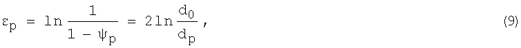 р=1-(d0/dp)2 – предельное равномерное сужение; d0 и dp – диаметры образца до испытания на растяжение и на участке равномерной деформации.