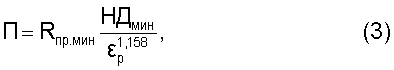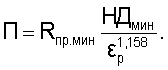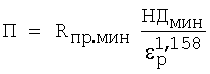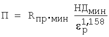 где П – наименьшее значение показателя сопротивления материала колец подшипника контактной упругопластической деформации; Rпр,мин – наименьший приведенный радиус кривизны в контакте ролика и дорожек качения колец подшипника; НДмин – наименьшее значение пластической твердости материала дорожки качения кольца подшипника;
