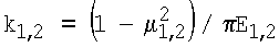 Определяют с учетом упругих констант (E1,2 и