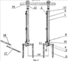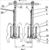 Таким образом, соединение рядов рожков подвески осью, расположенной параллельно продольной оси конвейера, позволяет улучшить условия эксплуатации (осуществлять сброс тушек в любую сторону от конвейера, не допуская удара тушек о соседние подвески), повысить эффективность охлаждения (тушки не сжимают друг друга, т.е. лучше контактируют с охлаждающей средой) и увеличить производительность линии, т.к. их можно размещать на конвейере с шагом 0,16 м (в аналоге и прототипе шаг равен 0,32 м или 0,48 м): П=S×n/T×t=48×6/0,16×0,5=3600 шт./ч. Оснащение оси упором и размещение фиксатора на нижнем конце тяги обеспечивает лучшие условия эксплуатации, т.к. увеличение массы тяги за счет фиксатора быстрее и надежнее фиксирует приспособление для удерживания тушек в рабочем положении.