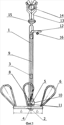 На фиг.4 изображен общий вид подвески после сброса тушек, вид спереди.