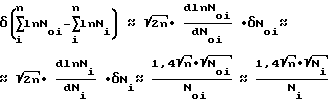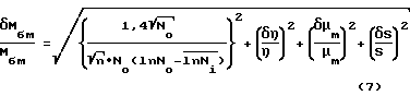 Погрешность в Мбм удобнее оценить, если значение N0 определяется в каждом единичном измерении (синхронно с Ni). В этом случае произведение nlnN0 из (6) заменяется на сумму Учитывая тот факт, что N0i для случая измерения биомассы, в силу ее относительной “прозрачности” для -квантов, мало отличается от Ni, во всем диапазоне измерений абсолютная погрешность логарифмического члена (ее можно рассматривать как погрешность, обусловленную многократными замерами числа импульсов в идентичных условиях) может быть выражена так:![]() И поэтому, учитывая, что ![]() ![]() Как следует из (7), статистическая ошибка зависит не только от статистической обеспеченности единичного измерения (N0i и Ni), но и от числа единичных измерений n. В этой связи при измерениях биомассы в значительных объемах нет необходимости стремиться получить маленькую статистическую погрешность в единичном измерении. Это привело бы к неоправданно большому времени измерения. Статистическая ошибка может быть выведена на необходимый уровень (уровень случайных ошибок , m и S, которые находятся в диапазоне 0.5 – 1.5%) вследствие многократного суммирования единичных замеров уже при n 50-100. При этом выбор n зависит и от того, как распределена биомасса в объеме.