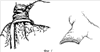 Для устранения недостатка данного известного способа обработки культи бронха по Суиту, связанного с низкой степенью герметизации обработанной культи бронха, были разработаны разнообразные конструкции, герметизирующие ее путем сдавления извне. Так, например, известны способы обработки культи бронха, которые включают сближение при помощи швов-держалок и (или) бронхофиксатора передней и задней (мембранозная часть) стенок бронха при расположении их во фронтальной плоскости, как это предусматривает известный способ Суита, и герметизацию культи бронха путем ее сжатия клеммой (см. фиг.2) из вываренной губчатой кости крупного рогатого скота (Богуш Л.К., Кагаловский Г.М. Новый способ закрытия культи бронха при резекции легкого. – Хирургия, 1961, 3, с.67-69), хрящевой расщепкой, изготавливаемой непосредственно во время операции из реберного хряща оперируемого (Гайдук П.Х. Сравнительная оценка методов закрытия культи бронха при удалении легкого (экспериментальное исследование). – Грудная хирургия, 2, 1960, с.68-70) или V-образными клипсами (см. фиг.3) из нержавеющей стали или серебра с выполненными на концах ее браншей выступами, имеющими фиксирующие кромки размером 1,5х0,5 мм (Busto A. P., Bucherl E.S. Extramucons closure of the bronchial stump with clips. – The journal of thoracic surgery, 1954, p.p.285-290).