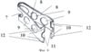 В пластине 13 выполнена прорезь 7, которая расположена в центральной ее части вдоль ее продольной оси и имеет близкую к прямоугольной форму с дугообразными меньшими сторонами. Длина прорези 7 выбрана равной не менее радиусов кривизны последующего изгиба пластины до U-образной формы. На участках пластины 13, которые после ее изгиба образуют бранши 8, выполнены по два отверстия 9 бранши, расположенные вдоль продольной оси пластины 13.