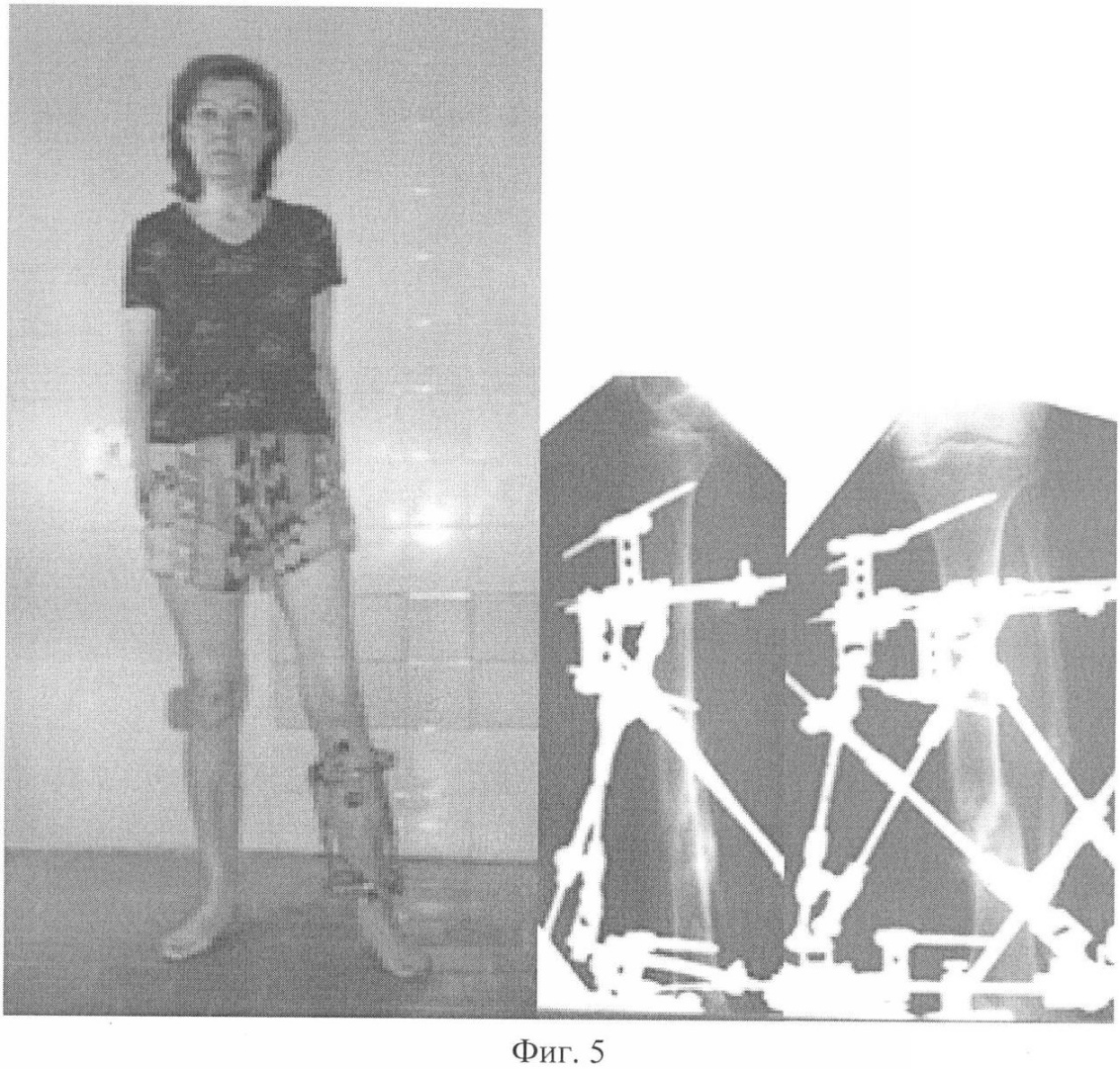 Фиг.5. Фотографии и фоторентгенограммы больной Ш. после устранения деформации,