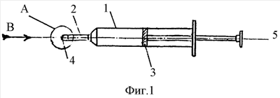 По мере продвижения вдоль оси 5 ИХГ 10 вступает во взаимодействие с гибкими эластичными лепестками 7 и раздвигает их, отгибая в сторону, противоположную оси 5. Оболочка 4 раскрывается и обеспечивает медленное поступление ИХГ 10 в полость глазного яблока.
