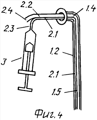 10. Вентиляционная трубка по п.1, отличающаяся тем, что каналы внутренней канюли (2), которые остаются снаружи наружного слухового прохода (4) отделены один от другого, и внешний наконечник (2.3) канала (2.1) заканчивается переходником шприца (3).