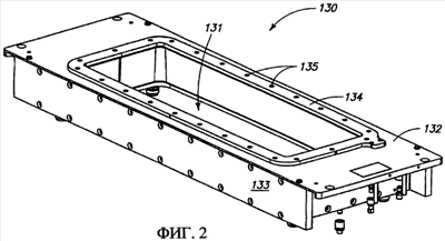 Фиг.2 представляет вид в перспективе одного из множества каркасов литейной формы, с которыми можно использовать варианты осуществления этого изобретения, изображающий литейную форму 130 с каркасом 132 литейной формы, полость или отверстие 131 литейной формы, крышку 134 для смазки с отверстиями 135 и боковую стенку 133.
