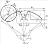 При этом оси симметрии O4 и O5 производящих контуров Кi и Ke наружного и внутреннего витков инструмента 1, формирующих соответственно выпуклые и вогнутые стороны зубьев шестерни 3, наклонены под углом к оси симметрии