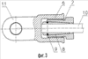 Цанговая часть зажима представляет собой корпус 6, выполненный в виде стакана с внутренней резьбой. В корпусе 6 установлена втулка 7 с внутренней гладкой конической поверхностью, на наружной цилиндрической поверхности которой выполнена резьба, взаимодействующая с внутренней резьбой корпуса 6. В резьбовой конической втулке 7 размещена цанга 8, представляющая втулку с наружной конической поверхностью и внутренней насечкой, состоящую из трех частей, соединенных между собой при помощи пружины 9, и зажимающую трос 10 средней анкеровки. Конические поверхности втулки 7 и цанги 8 направлены навстречу друг другу узкими частями стенок. Форма конца резьбовой конической втулки 7, выступающего из корпуса 6 цанговой зажимной части, выполнена под ключ. Корпус 6 цанговой части зажима снабжен проушиной 11.