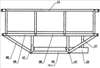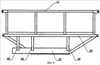 К средним продольным балкам 30, 31 решетки основания платформы сзади прикреплены трубчатые задние опорные стойки 47 квадратного профиля, установленные вертикально, и соединенные внизу со стойками 47 опорные стойки 48 такого же профиля, установленные наклонно. Нижние концы вертикальных стоек 47 соединены между собой горизонтально расположенной трубчатой опорной балкой 49. Кроме того, они соединены наклонными стойками 50 со второй промежуточной поперечной балкой 35 и с крайними продольными балками 29, 32. Стойки 47, 48, 50 соединены между собой и с балками сваркой. Опорная балка 49, с которой соединены задние опорные стойки платформы, установлена на верхних полках 3 лонжеронов рамы и связана с ними стремянками 51 П-образной формы (фиг.11). Стремянки 51 расположены в проушинах 52, образованных соединенными между собой опорными стойками 47, 48, охватывая наклонную стойку 48 и лонжерон. Концы каждой стремянки вставлены в отверстия в пластине 53, приложенной к нижней полке 4 лонжерона и прижатой к ней гайками 54, надетыми на резьбовые концы стремянки 51.