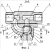Опорный 1 узел выполнен в виде корпуса 4 с обособленными, т.е. не сообщающимися между собой, входным 5 и с противолежащим ему выходным 6 отверстиями, каждое из которых имеет собственный канал с выходом к месту 7 соединения с запорным 2 узлом: входное 5 отверстие имеет канал 8, выходное 6 отверстие – канал 9.