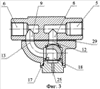 Как и по варианту 1, сквозной проходной канал 16 шаровой 14 пробки выполнен криволинейным. Съемный 10 корпус имеет внешний резьбовой ложемент 22 шаровой пробки с выполненным в нем атмосферным отверстием 25. В отличие от варианта 1 внешний резьбовой ложемент 22, а с ним и атмосферное отверстие 25 расположены по другую сторону от выходного 13 русла переходного 11 канала.