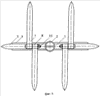 В предлагаемом изобретении корпус 1 устройства выполнен в виде параллелепипеда, у которого в средней части его боковой поверхности жестко закреплено веретено 2, а с противоположной стороны – прямоугольная пластина 3, на свободных концах которой посредством болтового соединения 4 смонтированы центральные лапы 5, при этом между параллелепипедом и центральными лапами вмонтированы оси 6, на которых шарнирно установлены по две пары складных лап 7, имеющих приливы 8 с совместными отверстиями 9, в которых размещены ограничители угла раскрытия 10, выполненные в виде болтового соединения, причем такие же совместные отверстия 11 выполнены посредине складных лап 7.