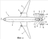Следовательно, применение третьего двигателя позволяет использовать два двигателя под крыльями, тяга которых меньше, чем у обычного двухмоторного самолета, и которые поэтому создают меньший шум и имеют меньшую массу, так что размер и масса стоек шасси 13 (основных и носовой) могут быть уменьшены, при этом снижение массы в значительной степени будет компенсировать дополнительную массу, создаваемую U-образными хвостовыми частями.