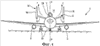 18. Самолет по п.12 или 14, отличающийся тем, что упомянутые стабилизаторы (12) горизонтальной хвостовой части незначительно симметрично отклонены в верхнем направлении так, чтобы придать им, если смотреть в вертикальной плоскости, перпендикулярной к упомянутой вертикальной продольной плоскости симметрии, расходящуюся V-образную форму, заострение которой соответствует их соединению с задней частью упомянутого фюзеляжа.