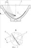 Предложенная форма для осуществления данного способа позволяет достичь цели изобретения. Выполнение углублений в виде тел вращения с треугольным сечением в двух диаметрально расположенных секторах формующей поверхности в нижней части формы в области контактирования гнутой заготовки стекла с формующей поверхностью обеспечивает получение на поверхности заготовки заданных геометрических отклонений, которые позволяют увеличить угол рассеяния полученного отражателя аэродромного светосигнального огня приближения. Установлено, что ширина рабочих граней углублений имеет диапазон 5-10 мм. При ширине рабочих граней углублений менее 5 мм эффект увеличения угла рассеяния отражателя практически отсутствует, а при ширине более 10 мм угол рассеяния также уменьшается из-за недопустимого искривления поверхности заготовки в области углублений. Ширина рабочих граней углублений в диапазоне 5-10 мм в каждом конкретном случае определяется кривизной формы и геометрическими размерами заготовки стекла.