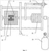 Заготовка спекаемого изделия 18 в виде компакта, полученного прессованием порошка, например окиси алюминия, с использованием органической связки или без нее, до плотности порядка 50-70% от теоретической плотности, помещается внутри цилиндрической пресс-формы 19, изготовленной из стали, в соответствии с п.2 формулы изобретения. Пресс-форма 19 с заготовкой спекаемого изделия 18 окружена тепловой изоляцией 22 в соответствии с п.3 формулы изобретения. Узел устройства, служащий для приложения внешнего давления к заготовке спекаемого изделия 18, показан более подробно на фиг.2. В отверстия пресс-формы 19 входят стержни 21, изготовленные из керамики на основе оксида алюминия. Стержни 21 передают давление от сильфона 20, создаваемое сжатым газом из баллона 25. Перемещение одного из стержней 21, а соответственно, и усадка спекаемого изделия 18 измеряются датчиком перемещения 26.
