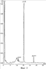 На фиг.3 представлена ВЭЖХ-хроматограмма элюата, полученного при промывке спиртом колонки с адсорбированным на хитозане экстрактом, в котором присутствуют пики примесей. Пик эхинохрома А отсутствует, т.к. эхинохром А полностью связывается с хитозаном, образуя комплексную соль.