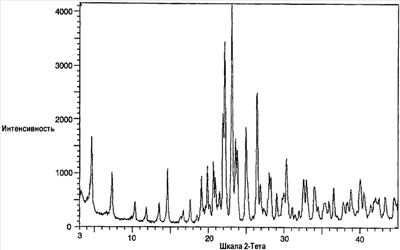 который характеризуется рентгеновской порошковой дифрактограммой с характерными пиками, выраженными в градусах 2 , приблизительно при 4,6, 7,2, 14,6, 19,9, 23,2 и 26,5.