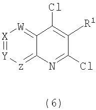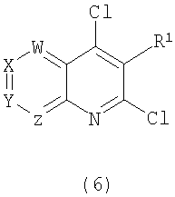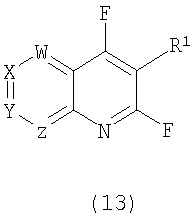 7. Способ получения соединения общей формулы (1) по п.1, в которой R обозначает хлор или фтор и R2 обозначает NR3R4 и W, X, Y, Z, R1, R3 и R4 являются такими, как определено в п.1, который включает введение амина общей формулы NR3R4 в реакцию с соединением общей формулы (6) или (13):