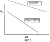 Фиг.2 представляет собой график, иллюстрирующий концептуальную зависимость между размером зерна керамических частиц и средним свободным промежутком между керамическими частицами (d/ ) в системе покрытия из кермета и трещиностойкостью (Кс) системы покрытия из кермета как для нанорежима, так и для микронного режима для систем, в которых связующий материал является пластичным и не содержит растворенной твердой фазы.