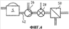 Фиг.4 показывает технологическое устройство согласно третьему предпочтительному варианту осуществления изобретения. Он применим в ситуациях, в которых целлюлоза, протекающая от промывного аппарата, является, по существу, ровной, и с этой точки зрения незначительная буферная емкость является необходимой в волоконной линии. Фактически патент US 5851350, который здесь включен полностью в качестве ссылки, раскрывает устройство перекачки более детально, при этом характерным признаком этого устройства является то, что разгрузочный шнек промывного аппарата 5, которым снабжено большинство промывочных устройств, подает целлюлозу, по существу, прямо во впускной канал 42 насоса 26. Таким образом, насос 26 не должен быть снабжен образующим турбулентность ротором, даже если бы он был предпочтительным, особенно в связи с более высокими консистенциями. Другие решения, описанные в патенте US 5851350, могут также быть использованы в данном конструкционном решении, из которых особенно решения, показанные на фиг.6а, 6b, 7а и 7b, упоминаются без исключения других решений. Для них является типичным присутствие между промывочным устройством и насосом промежуточного резервуара, в который шнек промывного аппарата подает целлюлозу. Предпочтительно промежуточный резервуар находится под давлением, но оно также может быть атмосферным, посредством чего это решение довольно похоже на решение с ловушкой для конденсата, показанное на фиг.3, за исключением того, что промывной аппарат может быть расположен на одинаковом уровне с фильтрующей стадией.
