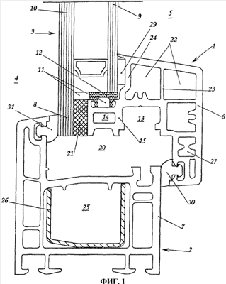 Фиг.3 – поперечное сечение профиля для створного оконного переплета по изобретению.