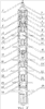 1. Устройство для стимуляции работы нефтегазовых скважин, включающее геофизический кабель для спуска устройства и состоящее из приборной головки, пускового механизма, депрессионного снаряда в виде двух и более приемных клапанных фильтров, соединенных между собой депрессионными камерами с атмосферным давлением, и манометрического блока, отличающееся тем, что применены приемные клапанные фильтры пневмогидроуравновешенной конструкции с проходными каналами диаметром от 10 до 50 мм и общий пневмогидроканал из депрессионных камер, каждая из которых длиной от 1,5 до 3 м и более, обеспечивающих автоматическое открытие всех клапанных фильтров и создание в скважине депрессионной зоны, регулируемой по протяженности количеством приемных фильтров и депрессионных камер, с величиной депрессии в пределах (0,1-0,9) гидростатического давления, продолжительностью действия депрессии 0,6-1,2 с и более при управляемом коэффициенте воздействия на пласт – Квп, оцениваемом отношением общей площади проходных каналов приемных клапанных фильтров к площади зазора между депрессионным устройством и скважиной, составляющем значения до 1,0 и более, при этом нижняя депрессионная камера использована в качестве контейнера для сбора и подъема на поверхность извлеченного из пласта кольматанта; в качестве пускового механизма применен электрогидравлический пусковой механизм, при открытии которого под действием гидростатического верхнего приемного клапанного фильтра с автоматическим последовательным открытием всех ниже расположенных приемных фильтров.